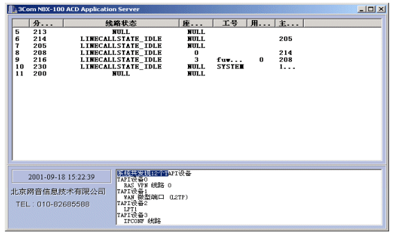 NBX呼叫中心的核心設備是3Com公司的NBX網(wǎng)絡交換機,NBX網(wǎng)絡交換機支持開放式電話開發(fā)平臺TAPI2.X,TAPI它是Microsoft電話技術應用程序編程界面標準,運用TAPI可以方便、高效地完成針對語音線路的控制開發(fā),從而完成自動語音應答(IVR)、自動話路分配(ACD)、以及坐席接待、計費、錄音等需求。使用TAPI這種標準使得用戶可以集成第三方CTI程序以完成各種高級需求。