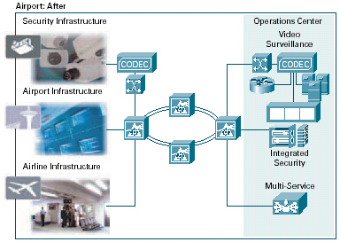 。。許多機(jī)場(chǎng)安全系統(tǒng)基于需人工協(xié)調(diào)提示和報(bào)警的不兼容應(yīng)用。通過在網(wǎng)絡(luò)上實(shí)現(xiàn)這些系統(tǒng)和在基于標(biāo)準(zhǔn)的通用基礎(chǔ)設(shè)施上傳輸信息,機(jī)場(chǎng)可實(shí)時(shí)關(guān)聯(lián)安全信息,并根據(jù)整體形勢(shì)作出立即行動(dòng)。思科提供了一個(gè)強(qiáng)大的網(wǎng)絡(luò)基礎(chǔ)設(shè)施,可集成機(jī)場(chǎng)中的視頻監(jiān)視、其它物理安全設(shè)備和用于緊急響應(yīng)及通信的設(shè)備。無(wú)論設(shè)備使用有線還是無(wú)線連接,都可在所有類型的設(shè)備上實(shí)現(xiàn)語(yǔ)音、視頻和數(shù)據(jù)交換。