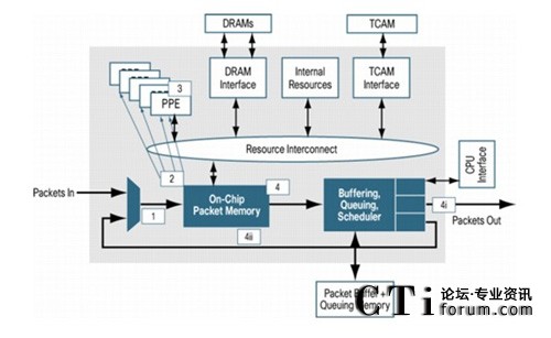 傳統(tǒng)的網絡處理器為了優(yōu)化報文分類和處理速度并節(jié)省內存訪問帶寬,通常僅訪問數據包頭以獲得較高的轉發(fā)吞吐量,當這類處理器進行深度數據包檢測(DPI),防火墻,網絡地址轉換(NAT),Netflow等復雜操作時,將會對性能造成不良影響。