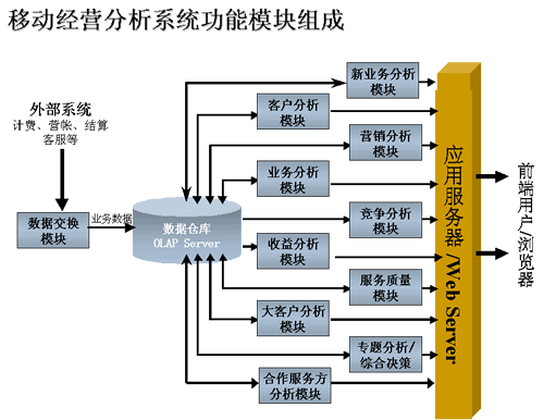 。。在多年業(yè)務(wù)支撐系統(tǒng)(BSS/OSS)的建設(shè)中,電信運營商積累了大量的原始業(yè)務(wù)數(shù)據(jù)。這些數(shù)據(jù)涉及到客戶發(fā)展、市場營銷、業(yè)務(wù)收入、銷售渠道、網(wǎng)絡(luò)優(yōu)化、網(wǎng)絡(luò)規(guī)劃等各種方面,如何才能快速地從中提取(檢索、查詢)信息,深層次發(fā)掘隱藏在客戶數(shù)據(jù)和業(yè)務(wù)數(shù)據(jù)中的內(nèi)在規(guī)律,及時把握業(yè)務(wù)發(fā)展的趨勢,對業(yè)務(wù)發(fā)展進行前瞻性分析預(yù)測以制定相應(yīng)的市場策略,對市場機會做出及時、靈活的反應(yīng),成為電信運營商在信息時代的市場競爭中立于不敗之地的關(guān)鍵所在。
