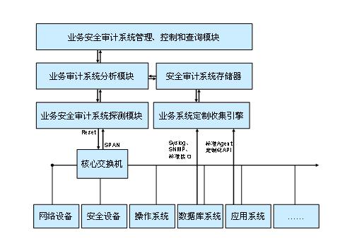 圍繞《薩班斯法案》第404條款的基本要求,結合運營商的業(yè)務支撐系統(tǒng)運維特點,面向業(yè)務系統(tǒng)的安全審計系統(tǒng)一般應具備以下功能: