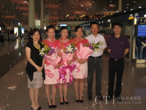 信息導(dǎo)航業(yè)務(wù)中心總經(jīng)理?xiàng)钣、副總?jīng)理魏婕等領(lǐng)導(dǎo)前往機(jī)場送行,中心副總經(jīng)理郝孟堯帶隊(duì)前往韓國。中心領(lǐng)導(dǎo)向三位114話務(wù)員送上了獻(xiàn)花與祝福,希望她們珍惜此次走出國門為世博會(huì)服務(wù)的難得機(jī)會(huì),展現(xiàn)114的風(fēng)采,將北京聯(lián)通114最動(dòng)聽的聲音、最美麗的微笑、最優(yōu)質(zhì)的服務(wù)向世界呈現(xiàn)。三位114話務(wù)員表示,將用純正、專業(yè)的中文綜合信息咨詢服務(wù),讓世界感受到聯(lián)通114的熱情與微笑。