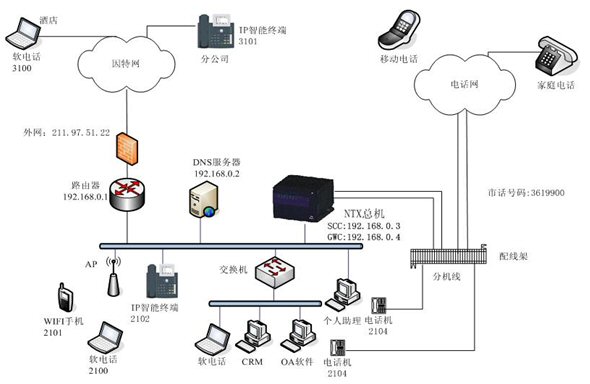 NTX IP融合通信電話(huà)總機(jī)網(wǎng)絡(luò)架構(gòu)