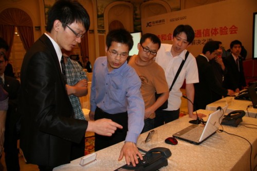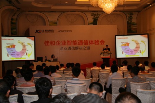 CTI論壇(ctiforum)4月25日消息(記者 潘婷婷): 廣東佳和通信技術(shù)有限公司主辦的首場(chǎng)企業(yè)智能通信體驗(yàn)會(huì),于2011年4月13日在廣州富力麗思卡爾頓酒店隆重召開,并取得圓滿成功。此次體驗(yàn)會(huì)來自佳和通信的負(fù)責(zé)人和業(yè)內(nèi)專家就佳和企業(yè)智能通信平臺(tái)的應(yīng)用以及協(xié)同辦公的發(fā)展趨勢(shì)發(fā)表了主題演講,為所有到場(chǎng)的100多位來賓做了詳實(shí)的介紹。同時(shí)展示了佳和“睿”系列的7個(gè)應(yīng)用解決方案,并對(duì)拳頭產(chǎn)品——智能IP話機(jī)T600、移動(dòng)分機(jī)M600、個(gè)人助理軟件IPA PRO等進(jìn)行了現(xiàn)場(chǎng)演示和互動(dòng),其目的在于使現(xiàn)場(chǎng)嘉賓充分感受企業(yè)智能通信的價(jià)值和魅力,同時(shí)親身體驗(yàn)到如何在在加速辦公自動(dòng)化的同時(shí)提高企業(yè)效率、節(jié)約成本。