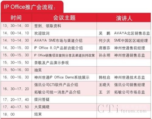 CTI論壇(ctiforum)3月6日消息(記者 潘婷婷): 2011年憑借廣泛的市場宣傳,Avaya IP Office以卓越的產(chǎn)品性能,突出的價格優(yōu)勢得到了廣大代理商的大力支持,取得了優(yōu)異的市場業(yè)績。為了與更多合作伙伴加強交流、密切合作,AVAYA 攜手神州世通,舉辦2012年Avaya IP Office產(chǎn)品渠道推廣大會,屆時將邀請AVAYA領(lǐng)導(dǎo)、產(chǎn)品專家為大家講解 IP Offic 8.0新版本功能、分享經(jīng)典案例。同時神州世通將推出2012年代理商渠道扶持政策。