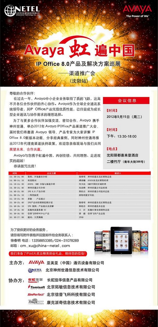 AVAYA IPO 8.0 巡展—渠道推廣會(huì)沈陽站 [5月15日]
