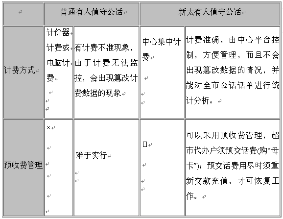 長期以來,普通有人值守公話采用計費器+電話的方式進行通話和計費,這種方式的弊端是費率固話在計費器上,費率、時長、話單等都在計費器本地控制,運營商無法了解各公話的計費情況,公話代辦戶不按計價器亂收費、篡改計費器電路以達到多收費的現(xiàn)象時有發(fā)生,嚴重侵害消費者利益,由此帶來的大量計費糾紛又影響了運營商聲譽和管理,集中管理控制有人值守公話勢在必行。