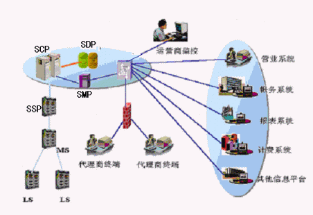 4、SMAP:負責在一定的權限內(nèi)為代理商提供接入訪問功能,支持代理商通過撥號或DDN專線接入代理商管理系統(tǒng),代理商管理系統(tǒng)存儲代理商所有數(shù)據(jù),提供Web服務方式的應用功能界面。代理商管理系統(tǒng)能夠?qū)I(yè)務受理的數(shù)據(jù)發(fā)送到智能網(wǎng)、交換機系統(tǒng),完成代理商對所代理業(yè)務的實時處理。