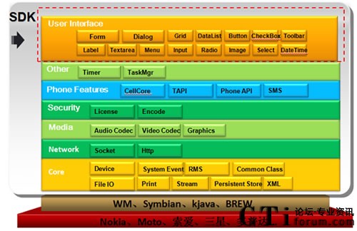 據(jù)新太科技內(nèi)部相關(guān)人員介紹,mWAY的技術(shù)架構(gòu),一方面可以支持電信網(wǎng)絡(luò)各種各樣的接入,保證和運(yùn)營(yíng)商已有的網(wǎng)絡(luò)的互聯(lián)互通,同時(shí)也支持和移動(dòng)互聯(lián)網(wǎng)手機(jī)之間的連接,支持相關(guān)音頻、視頻的呼叫、傳送。業(yè)務(wù)接口可以給第三方應(yīng)對(duì)研發(fā)需求,手機(jī)終端有相關(guān)的引擎,滿足手機(jī)終端的業(yè)務(wù)研發(fā)的需求,這部分有一個(gè)手機(jī)客戶端軟件,是一個(gè)移動(dòng)性的引擎。這個(gè)引擎移植在手機(jī)終端客戶端上,給上層提供統(tǒng)一的解析開放系統(tǒng)。