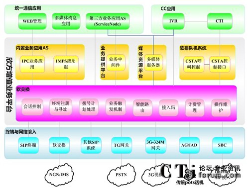 可在此基礎(chǔ)上提供形成了多媒體呼叫中心、IPPBX、IPCentreX、IVR/IVVR二次開發(fā)平臺(tái)、一號(hào)通、即時(shí)消息/呈現(xiàn)等一系列的重量級新型業(yè)務(wù),同時(shí)其所提供的業(yè)務(wù)開發(fā)能力允許第三方自主的研發(fā)和部署的業(yè)務(wù)應(yīng)用,滿足業(yè)務(wù)應(yīng)用的個(gè)性化需求。