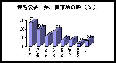 。2)市場特點:市場份額進一步向業(yè)內(nèi)領(lǐng)先者集中,華為技術(shù)、上海貝爾、BISC 依然保持該領(lǐng)域三甲地位,市場份額占市場總量的67.3%。上述三家廠商各自的市場份額分別占到市場總量的26.6%、21.2%、19.5%。 此外,以中興通訊 、華為技術(shù)為代表的非外資設(shè)備廠商積極開拓國外市場以實現(xiàn)其國際化發(fā)展戰(zhàn)略。 中心城市市場趨于飽和,市場競爭焦點向本地網(wǎng)機型拆換和中小城市以下市場轉(zhuǎn)移。激烈的價格競爭導致該市場平均利潤微薄。