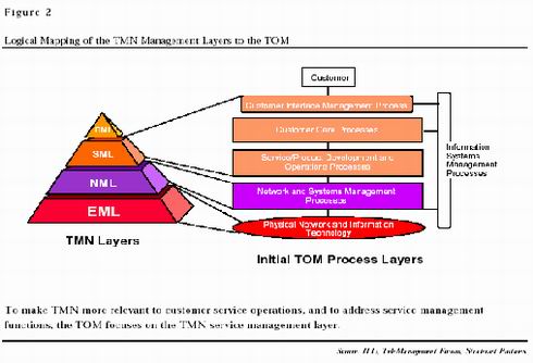 國際電聯(lián)的出發(fā)點雖好,但它更強調從網絡元素層開始的清晰的統(tǒng)一體系,而為了保護自己的商業(yè)秘密,各大運營商往往不希望公開自己的網絡元素層的標準,同時,網絡元素層的標準化對運營商的業(yè)務發(fā)展幫助不大。在熱烈討論了一段時間之后,TMN漸漸被忽視了。而另一只希望從技術角度解決管理問題的力量,電信管理論壇,卻帶有一定偶然性地逐漸確立了自己的地位。電信管理論壇在開始的時候并沒有夢想能建立覆蓋整個電信運營企業(yè)的管理系統(tǒng),其初衷是解決在當時日漸突出的跨企業(yè)的客戶數據交換問題。因此,和國際電聯(lián)不同,電信管理論壇從開始就非常強調實用性,并把目光集中到了各企業(yè)相互間有大量數據交換,因此迫切需要建立標準的服務管理層和網絡管理層,并提出了電信運營支持系統(tǒng)(OSS)的概念,并公布了模塊化的電信運營導圖(TOM)。