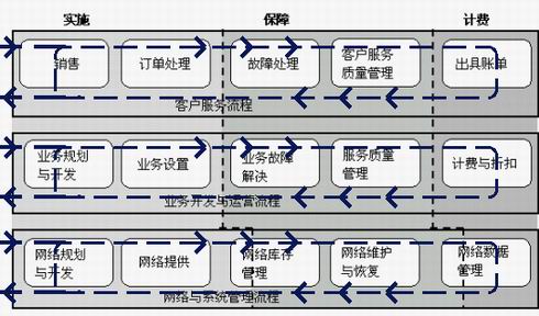 Management Forum)于1994年對包括英國電信、法國電信、GTE、大西洋貝爾和NTT等世界八大電信運營商的調查顯示,當時在這些世界最領先的電信運營商中間,服務管理的概念仍未得到廣泛認可。主要表現(xiàn)在以下兩個方面:第一、部門劃分仍是按網絡運營部、工程部、業(yè)務服務部、維修部等企業(yè)縱向管理的需求來劃分的;第二、業(yè)務提供仍是傳統(tǒng)制造業(yè)以產定銷的思維習慣,根據技術能力提供客戶服務,而不是根據客戶需求來決定所提供的服務。