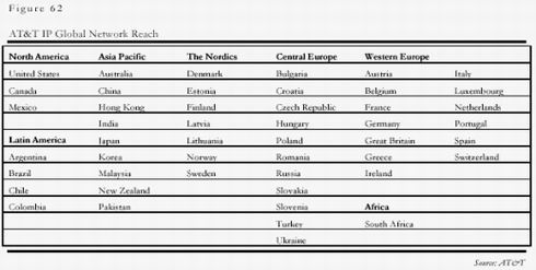 。∑髽I(yè)戰(zhàn)略:在商業(yè)用戶方面,AT&T一邊加緊完善自己的全球接入網絡,如在上海設立分公司;一邊積極提高自己向商業(yè)用戶提供全面解決方案的能力,AT&T公司新成立的AT&T解決方案部門可以被稱做電信領域的IBM全球服務公司,在很短的時間內,AT&T解決方案部門已經發(fā)展到7500人,年營業(yè)額超過50億美元,同時能為商業(yè)用戶在全球范圍提供全面的電信解決方案。
