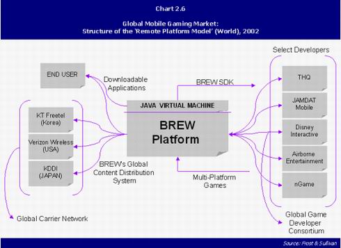 當(dāng)然,企業(yè)對未來的把握也往往和自己對這個(gè)行業(yè)的熟悉程度分不開的,所以微軟今天的策略大都帶有強(qiáng)烈的IT和互聯(lián)網(wǎng)的味道。而移動(dòng)市場當(dāng)中的新貴高通公司,就想當(dāng)年的微軟一樣,偶然性地掌握了CDMA的核心技術(shù),同時(shí)由于移動(dòng)通信在全球的興起,成了移動(dòng)通信價(jià)值鏈中的重要環(huán)節(jié)之一。但是,由于所有的競爭廠家都希望自己擁有核心技術(shù),技術(shù)上略落后,但更開放的GSM得到了更多市場的青睞。為了保持自己的地位,高通采取了與微軟相似的地位,拋出了名為BREW的移動(dòng)應(yīng)用平臺。與微軟在寬帶和廣電的策略相同,高通在移動(dòng)通信領(lǐng)域提供從技術(shù)、服務(wù)到外包運(yùn)營等全套解決方案。在移動(dòng)游戲領(lǐng)域,高通為美國第一大無線運(yùn)營商Verizon搭建了基于BREW的游戲業(yè)務(wù)平臺,同時(shí)負(fù)責(zé)這一平臺的運(yùn)圍和與游戲提供商的合作及管理、促銷等工作。與Verizon的合作是獨(dú)家的,建立在利潤分成的基礎(chǔ)上,到現(xiàn)在為止,這種模式是移動(dòng)游戲領(lǐng)域最成功的合作之一。可以說,高通把自己變成了半個(gè)運(yùn)營商,同時(shí)由于擁有客戶資源和合作模式提供,高通的地位有望超過Verizon。