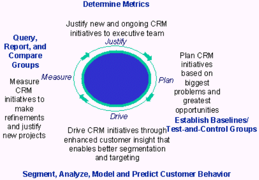 我們必須以循環(huán)的方式對CRM進行研究,這樣我們就可以改進我們的行為,評價我們的做法,繼續(xù)執(zhí)行CRM流程。在評價以及計劃階段,與已經(jīng)在測試控制小組中建立的標準相比,F(xiàn)SPs必須使用已經(jīng)經(jīng)過調(diào)整而不是先前就已經(jīng)決定了的標準。這樣,決策層(比方說產(chǎn)品,渠道、部門或者地區(qū)經(jīng)理,營銷經(jīng)理以及生產(chǎn)主任)就可以理解客戶行為,指導商業(yè)策略,優(yōu)化管理資源,改善銷售渠道,提高產(chǎn)品質(zhì)量以及增加客戶利益。只有經(jīng)過查詢,做報告,小組進行比較才能夠有效開展這項活動。