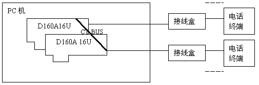 2、兩塊東進(jìn)D160A 16U模擬語音卡(PCI):?jiǎn)伟逄峁?6路話路處理能力。