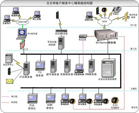 文正明的呼出系統(tǒng)可以通過電話,短信,email等各種方式主動(dòng)為股民提供服務(wù)。由于ISDN的接續(xù)速度比較快,系統(tǒng)在呼出的性能上比模擬中繼和一號(hào)方式好很多。