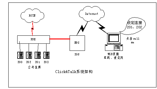 舉個(gè)例子,在傳統(tǒng)的網(wǎng)上交流手段下,對(duì)于一個(gè)在線商戶來說,其客戶如果需要與而且也容易造成客戶流失,F(xiàn)在采用Click&Talk系統(tǒng)后,一個(gè)在線的商戶只要將一個(gè)Click & Talk的按鈕嵌在在線商店里。世界各地的用戶只需要通過PC,點(diǎn)擊在線商戶的這個(gè)按鈕,就能與商戶電話聯(lián)系,或請求在方便的時(shí)間給予回?fù)。通過這種通信模式,世界各地的客戶都能和您保持密切互動(dòng)的聯(lián)系,而不用擔(dān)心長途電話的費(fèi)用。還可以實(shí)現(xiàn)公司出差人員及分支機(jī)借助Click&Talk平臺(tái)和公司總部的通話的應(yīng)用,大幅節(jié)省話費(fèi)成本。