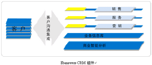 。。作為企業(yè)級客戶關系全面解決方案,Ebanswers CRM包含了可無縫整合又可獨立運行的三個功能組件:銷售,營銷,服務流程自動化軟件系統(tǒng);客戶溝通集成信息化方案;深層商業(yè)智能分析。其中客戶溝通層組體是Ebanswers