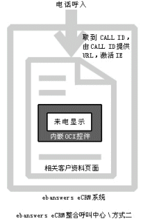 。。Ebanswers CRM整合呼叫中心的這種方式過程更清晰,當有電話呼入系統(tǒng)時,由內嵌的OCX控件取到call