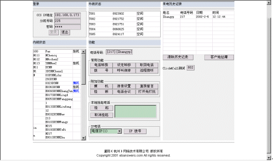 。。利用內嵌的OCX控件,星際網絡已經完全實現(xiàn)了在web頁面調用呼叫中心的功能,其主界面如下: