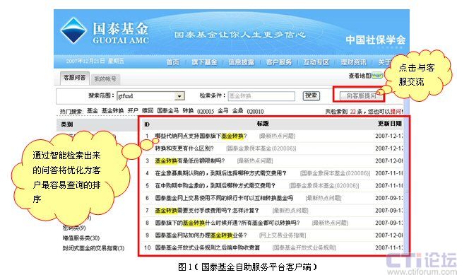 國(guó)泰基金成立于1998年3月5日,是國(guó)內(nèi)按照規(guī)范化要求成立的首批基金管理公司之一,注冊(cè)資本為1.1億,總部位于上海。贏得了包括封閉式和開放式基金近150萬(wàn)持有人的信任,成為了一家市場(chǎng)信譽(yù)良好、具有較高知名度的專業(yè)證券投資管理公司,得到社會(huì)中介機(jī)構(gòu)的諸多肯定。日前,該公司運(yùn)用53IQ客戶自助服務(wù)系統(tǒng),進(jìn)一步拓展客戶服務(wù)方式,實(shí)現(xiàn)了先進(jìn)的客戶關(guān)系管理。