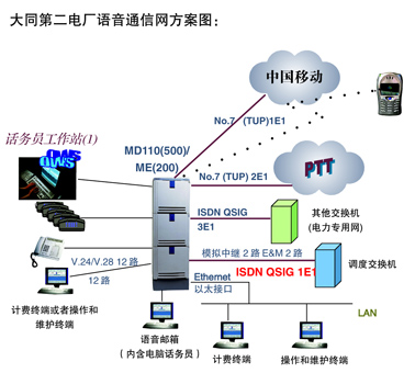 大同第二電廠語音通信網(wǎng)方案圖: