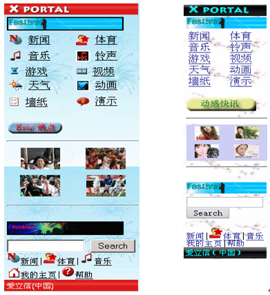 移動門戶地址訪問的不同顯示效果