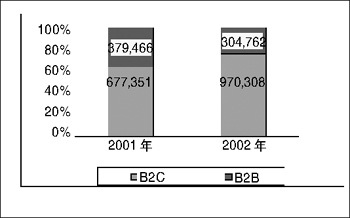 各種類型游戲在整個游戲市場中所占的比例(2001年 / 2002年)