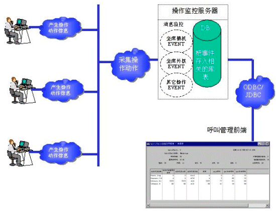 這種方案的主要優(yōu)點是信息非?焖俸蜏蚀_,由于消息來源只和坐席的操作動作有關,并且中間沒有其它中轉(zhuǎn)系統(tǒng),所以不會出現(xiàn)坐席已經(jīng)掛機2秒后,管理系統(tǒng)還顯示坐席通話的情況。