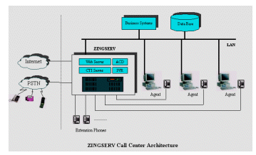 ZINGSERVò采用可靠性、安全性極高的嵌入式實(shí)時LINUX操作系統(tǒng)進(jìn)行開發(fā)。系統(tǒng)軟件采用客戶/服務(wù)器結(jié)構(gòu),服務(wù)器集ACD(技能組)、IVR、CTI