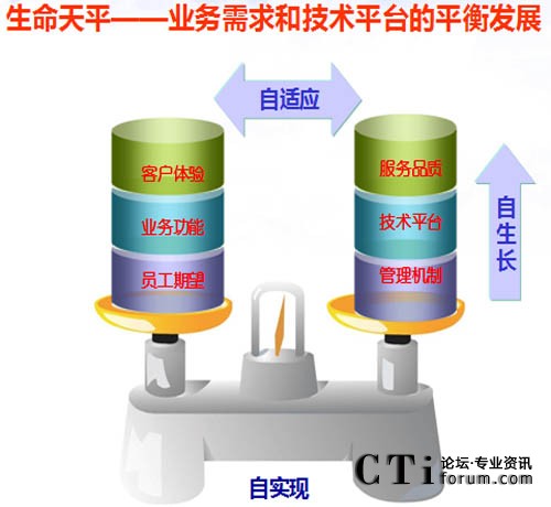 “生命天平”所體現(xiàn)的聯(lián)絡(luò)中心運(yùn)營(yíng)管理是一個(gè)動(dòng)態(tài)持續(xù)的過(guò)程,客戶(hù)體驗(yàn)、業(yè)務(wù)功能和員工期望是不斷變化的,這就要求平臺(tái)要具有生命力,要不斷滿(mǎn)足客戶(hù)和業(yè)務(wù)新的需求,能夠主動(dòng)的根據(jù)客戶(hù)體驗(yàn)提升服務(wù)品質(zhì),跟隨業(yè)務(wù)功能變化提升技術(shù)平臺(tái),結(jié)合員工期望,完善和改進(jìn)管理機(jī)制。使聯(lián)絡(luò)中心始終處于自生長(zhǎng)、自適應(yīng)、自實(shí)現(xiàn)的平衡調(diào)節(jié)過(guò)程中。
