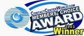 “用戶最佳選擇獎(jiǎng)”專門(mén)頒發(fā)給呼叫中心方面的最佳公司、解決方案或軟件,獎(jiǎng)項(xiàng)由所有呼叫中心的使用者投票評(píng)選而得。ContactCenterWorld.com