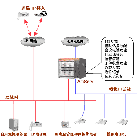 - 電話系統(tǒng)與傳統(tǒng)的交換機(jī)連為一個(gè)統(tǒng)一的通訊整體