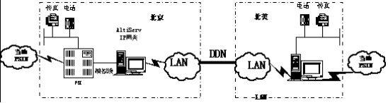 3、系統(tǒng)結構:北京新浪在Nortel交換機與AltiServ網(wǎng)關之間采用模擬線連接,AltiServ通過網(wǎng)卡接入LAN后,再通過數(shù)層路由器接入北京與北美的DDN專線。