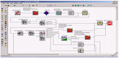 Apropos應(yīng)用程序設(shè)計是一個基于GUI的先進(jìn)的電話PIL版本。呼叫流曲線圖通過放置和連接TeleObjects被建立,在格子之上的圖線代表各種各樣的呼叫流功能。當(dāng)數(shù)據(jù)被保存時,因為PIL代碼,呼叫流的圖線會被自動地產(chǎn)生。然后這個合成的結(jié)果通過在Apropos服務(wù)器上被運行來實現(xiàn)改變呼叫處理系統(tǒng)。