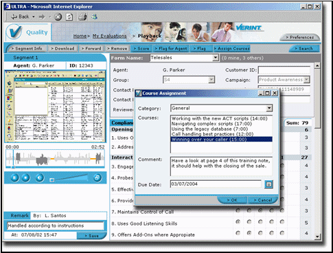 座席人員可以登陸ULTRA Web Portal來(lái)了解他們的評(píng)估結(jié)果和被分配給他們的培訓(xùn)資料。ULTRA Web Portal主頁(yè)提供座席兩個(gè)工作目錄.收件箱內(nèi)使他們自己的交互記錄和主管所作的評(píng)估結(jié)果。我的課程內(nèi)包括他們需要完成的培訓(xùn)資料的鏈接。