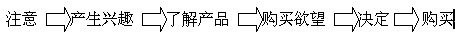 另外在其它的銷售渠道上,如電視、廣播、報(bào)紙等,他們對(duì)市場(chǎng)目標(biāo)的準(zhǔn)確度都是不高的,因?yàn)檫@樣的原因,也無法對(duì)目標(biāo)市場(chǎng)作掌控和測(cè)試,雖然他們可以很快速的擴(kuò)展市場(chǎng),對(duì)市場(chǎng)產(chǎn)生很大的響應(yīng)力,但如果沒有很好的市場(chǎng)營(yíng)銷與品牌整體性和長(zhǎng)期性規(guī)劃,也很快的會(huì)變成曇花一現(xiàn),歷史中的記憶,這些渠道的成本也是最高的,所以不是所有的企業(yè)都能一體適用的,尤其是中小型企業(yè)是無法長(zhǎng)期負(fù)擔(dān)的。誠如在之前的文章里面分析所講的,最好的銷售效果是一拉一推的力量,用多媒體感官性及理性的獲取消費(fèi)者的注意力,再配合快速效能的主動(dòng)銷售,往往能將營(yíng)銷的效果提升到最高的層面。將到這兒,就不得不順帶提到消費(fèi)者購買的行為模式。我們將消費(fèi)者對(duì)購買的心理和行為分為幾個(gè)階段: