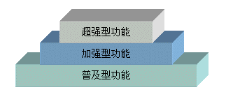 我們針對客戶群范圍的三個層次,也將NBX3000系統(tǒng)功能分成三個層次:普及型功能、加強型功能和超強型功能,分別對應(yīng)于不同的客戶群。