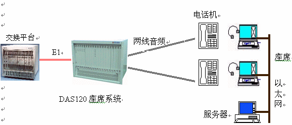 ·DAS120與交換平臺(tái)采用E1連接,信令為隨路信令CAS。