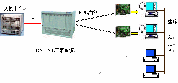 ·DAS120與交換平臺(tái)采用E1連接,信令為透明通道Clear Channel。所有通道在初始化時(shí)就實(shí)現(xiàn)連接。