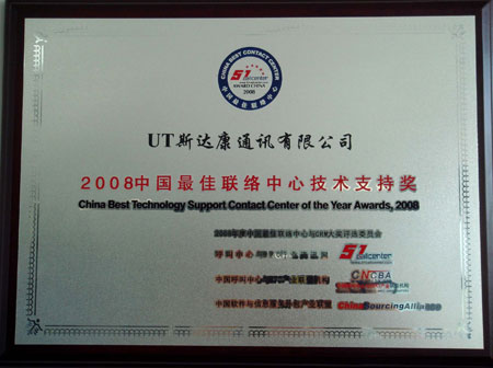 UT斯達康獲"2008中國最佳聯絡中心技術支持獎"
