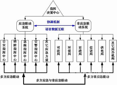 所謂“應(yīng)急與非應(yīng)急一體化聯(lián)動(dòng)”,就是在應(yīng)急聯(lián)動(dòng)和非應(yīng)急聯(lián)動(dòng)的基礎(chǔ)上,通過(guò)先進(jìn)的技術(shù)手段實(shí)現(xiàn)應(yīng)急聯(lián)動(dòng)系統(tǒng)與非應(yīng)急聯(lián)動(dòng)系統(tǒng)的高度整合,無(wú)縫聯(lián)接,并通過(guò)相應(yīng)的協(xié)調(diào)機(jī)制,實(shí)現(xiàn)各種應(yīng)急處置力量和非應(yīng)急處理部門的一體化的協(xié)同與聯(lián)動(dòng),以共同應(yīng)對(duì)和協(xié)調(diào)解決各種尤其是涉及多個(gè)方面的緊急或非緊急的事件和問(wèn)題。