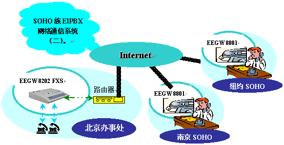 解決方案二:SOHO族EIPBX網(wǎng)絡(luò)通信系統(tǒng)