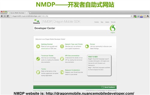 Gary:參加Nuance移動(dòng)開發(fā)項(xiàng)目的開發(fā)商可以在我們的專門網(wǎng)站下載SKD,可以用我們的API,在其移動(dòng)應(yīng)用集成可以有語(yǔ)音的功能,用我們的后臺(tái)的語(yǔ)音的技術(shù)。在90天內(nèi)進(jìn)行接入和測(cè)試是免費(fèi)的。這個(gè)項(xiàng)目推出3個(gè)月內(nèi),已經(jīng)有2500多家的開發(fā)商注冊(cè)參加這個(gè)項(xiàng)目,F(xiàn)在在美國(guó)的好幾家,比如說(shuō)賣書的,用戶可以在他們的網(wǎng)站上面用語(yǔ)音去搜索書的名字,或者購(gòu)買的名字。
