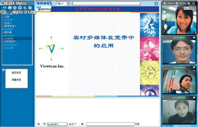 目前通過ADSL提供的帶寬,普通的遠(yuǎn)程教育和培訓(xùn)、內(nèi)容發(fā)布、路演等可視系統(tǒng)都可以順暢運(yùn)行,達(dá)到令商業(yè)用戶滿意的程度。在優(yōu)創(chuàng)科技為深圳網(wǎng)通、寧波電信、上海電信等提供的方案中,它們已經(jīng)可以為用戶提供100個并發(fā)點以上的可視通信系統(tǒng)。