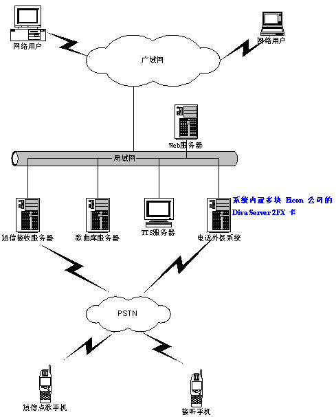 CTStart-2FX系統(tǒng)是靈訊科技公司采用加拿大Eicon網(wǎng)絡公司的Diva Server 2FX 語音卡開發(fā)的恒基偉業(yè)公司的網(wǎng)絡點歌系統(tǒng)。該系統(tǒng)運行在恒基偉業(yè)公司內部。