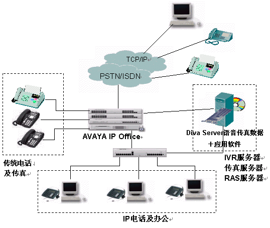 針對現(xiàn)代企業(yè)辦公通信的特點和要求,Avaya與Eicon經(jīng)過嚴(yán)格的產(chǎn)品互操作測試,及應(yīng)用調(diào)試共同推出了企業(yè)一體化辦公平臺解決方案,該解決方案整合了兩家公司的交換機(jī)、語音傳真板卡的各自優(yōu)勢,既可以應(yīng)用于傳統(tǒng)的網(wǎng)絡(luò)環(huán)境,又能應(yīng)用于純IP的通信環(huán)境,將不同的應(yīng)用技術(shù)和網(wǎng)絡(luò)結(jié)合起來,做到真正的辦公一體化。