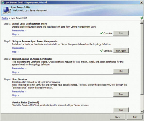 準(zhǔn)備好基礎(chǔ)結(jié)構(gòu)并發(fā)布拓?fù)浜,即可開始安裝前端服務(wù)器和服務(wù)器角色,以啟用 A/V 會議、企業(yè)語音、監(jiān)控、存檔及其他功能。準(zhǔn)備每臺服務(wù)器從運(yùn)行部署向?qū)В▍⒁妶D 3)開始,但每個服務(wù)器角色都有自己的安裝和配置要求。您可以在 TechNet 庫的“部署 Lync Server 2010 Standard Edition”部分查找更多詳細(xì)信息。